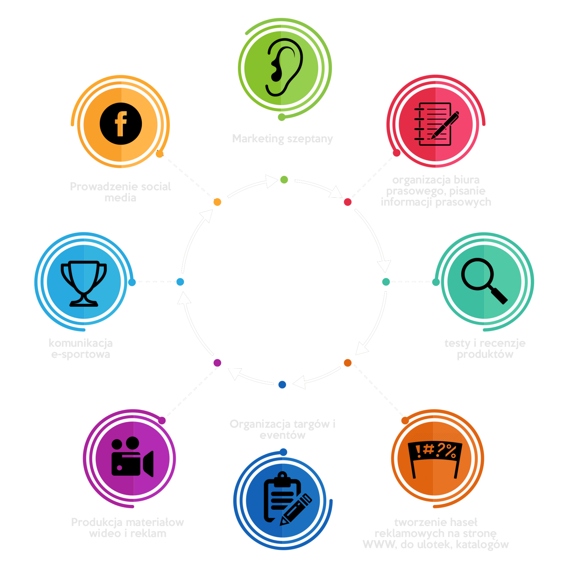 Jeśli myślisz o rozwoju lub stworzeniu czegoś nowego, to naprawdę warto z nami porozmawiać. Przez lata z sukcesem budowaliśmy wiele projektów - od tych małych jak social media czy informacje prasowe, aż po duże projekty jak udział w międzynarodowych eventach, stworzenie ogólnopolskiego portalu czy międzynarodowe kampanie video. Niezależnie od tego, czy mamy zająć się rzeczami małymi, czy też czymś dużym, zrobimy to na najwyższym poziomie.